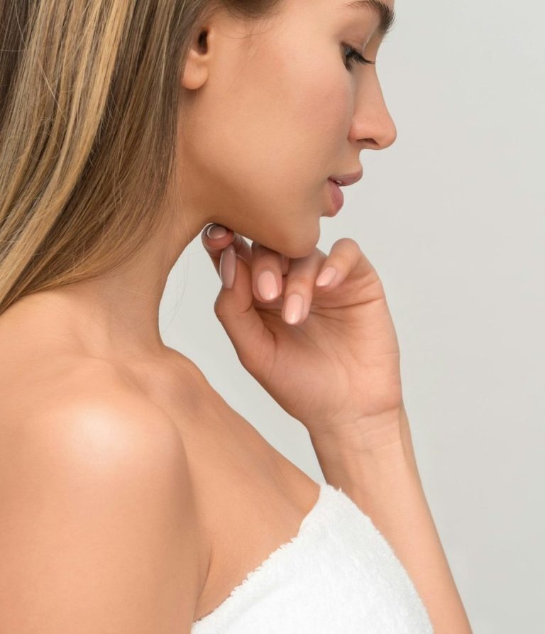 Das sogenannte Schönheits-Dreieck beschreibt eine schöne Kieferpartie und ein wohl geformtes Gesicht im unteren Bereich. Hier gehen wir Themen an wie ein Doppelkinn, hängende Mundwinkel und Bäckchen.